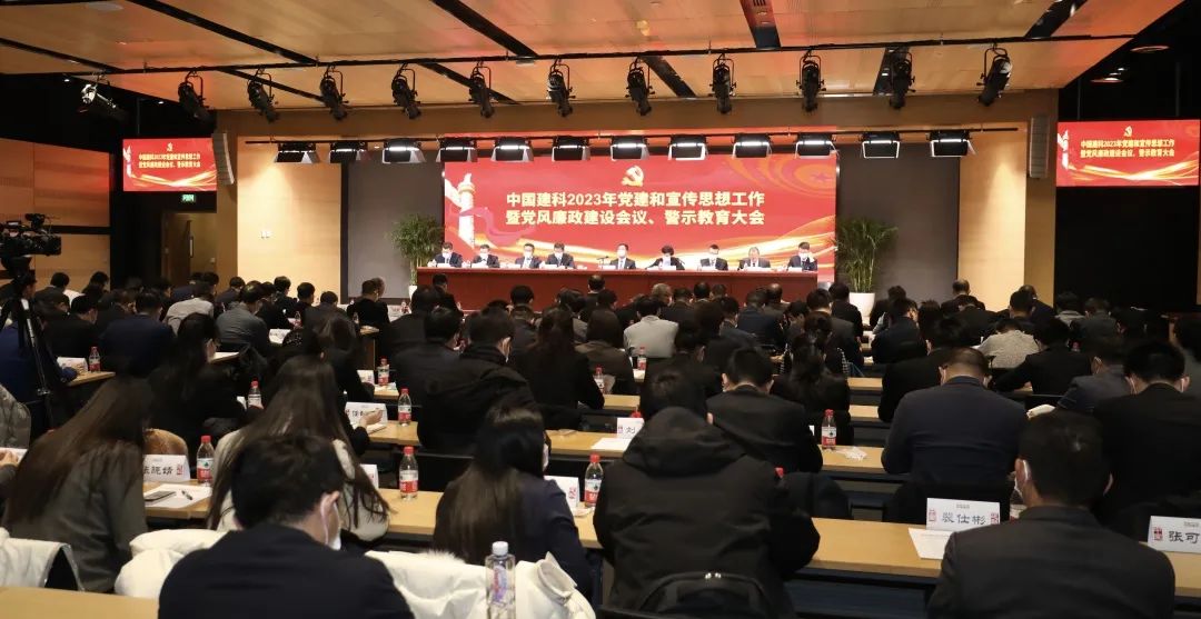 2023年2月17日,中国建设科技集团(简称中国建科)党委召开2023年度党建和宣传思想工作暨党风廉政建设会议、警示教育大会,深入学习贯彻落实党的二十大精神、二十届中央纪委二次全会精神,传达学习国资委党风廉政建设和反腐败工作会议暨警示教育大会精神,全面总结2022年度工作,分析形势任务,研究部署2023年度重点任务,开展警示教育。
