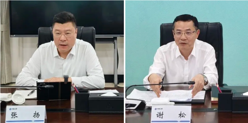 张扬与三峡集团党组成员、总会计师谢松就推进战略合作开展座谈交流。