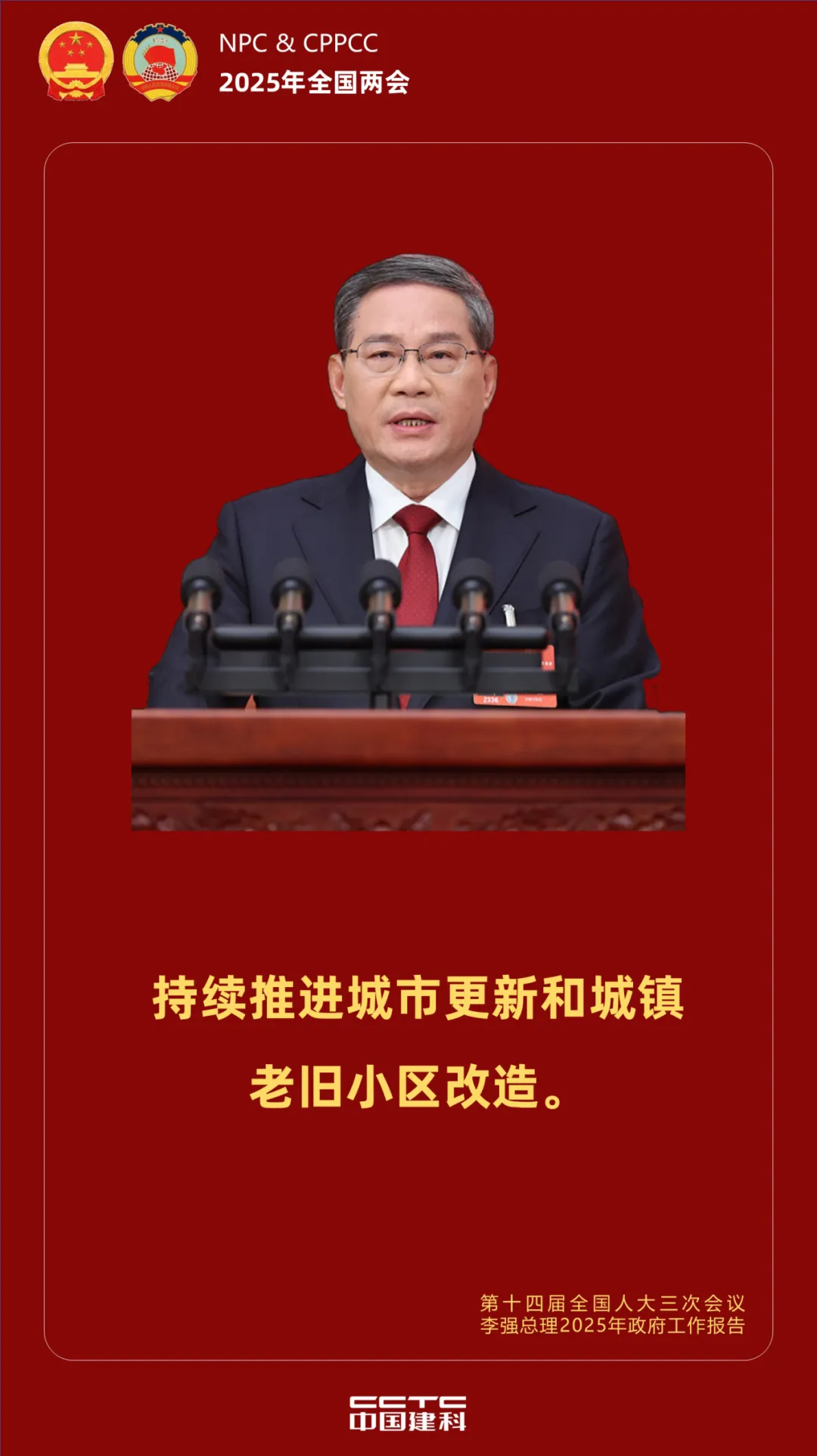 编者按:2025年3月5日,第十四届全国人民代表大会第三次会议在北京人民大会堂开幕,国务院总理李强向大会作政府工作报告。报告回顾2024年工作成绩,对2025年及今后一个时期经济社会发展作出重要部署。中国建科积极践行城乡建设科技领域“国家队”使命担当,聚焦主责主业,围绕政府工作报告提出的“好房子”建设、城市更新、适老化配套设施、文化遗产系统性保护等内容,盘点重大工程示范项目,归纳总结典型经验,为城乡建设高质量发展持续贡献智慧和力量。