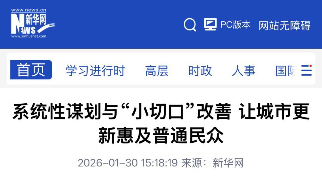 新华网报道:系统性谋划与“小切口”改善 让城市更新惠及普通民众编者按城市更新,始于规划,归于民生。当前我国城市发展已进入由增量转向存量、由外延扩张转向内涵提升的新阶段,如何让城市更新更有温度、更贴民心,...